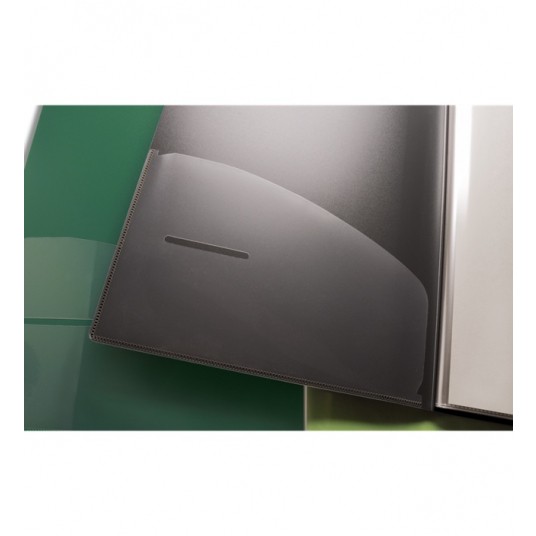 Album ofertowy z wyjątkowo grubą i sztywną okładką oraz miejscem na etykietę na grzbiecie. Posiada wewnętrzną kieszeń na wizytówki oraz matowe koszulki otwierane od góry, charakteryzujące się wysoką przezroczystością. Wykonany w ponad 50% z materiałów przetworzonych.