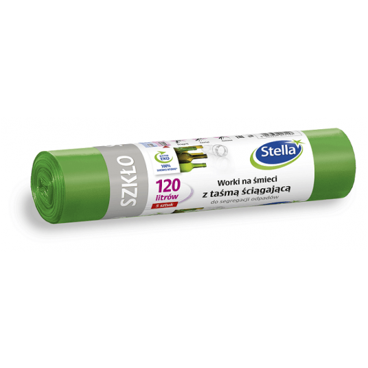 Worki na śmieci do pakowania i segregowania odpadów szklanych. Do zielonego worka na odpady możemy wrzucić: opróżnione szklane butelki i słoiki po napojach i żywności, szklane opakowania po kosmetykach (jeżeli nie są wykonane z trwale połączonych kilku surowców). Worki do segregacji odpadów są wykonane z grubej folii z regranulatu, dzięki czemu są wytrzymałe na obciążenia i przypadkowe rozdarcia. Mają mocny zgrzew, dzięki czemu nie przeciekają. Worki typu INTERLEAVE - bez odrywania, ten nowatorski system znacznie ułatwia wyjmowanie pojedynczego worka - wystarczy go wysunąć z rolki. Idealnie sprawdzają się w domu, biurach, miejscach publicznych. Pasują do większości pojemników na odpady. Worki do segregacji śmieci Stella posiadają praktyczną taśmę, która pozwala na szybkie i higieniczne zamknięcie worka oraz jego przenoszenie. Tolerancja parametrów produktu +/-10%.
