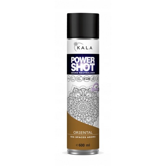 Neutralizator nieprzyjemnych zapachów, odświeżacz Kala POWER SHOT zapach ORIENTAL 600 ml to orientalny, korzenny zapach, który idealnie ułoży się w przestrzeni zdominowanej przez akcenty drewniane oraz skórzane. To zapach, który uwielbiają wszyscy miłośnicy kadzidełek. Zastosowany w tym produkcie neutralizator, doskonale poradzi sobie z nieprzyjemnym zapachem tytoniu.