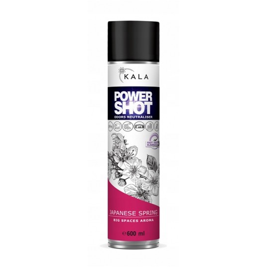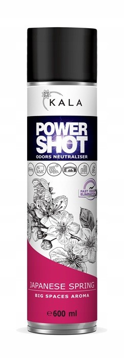 Neutralizator nieprzyjemnych zapachów, aromatyzer, odświeżacz Kala POWER SHOT zapach JAPANESE SPRING (600 ml) to zniewalający, zapach kwitnącej wiśni połączony z nutą budzących się do życia drzew oraz rozkwitających wiosennych kwiatów, pobudzi zmysły i doda wiosennej życiowej energii. Romantyczna naturalna nuta zapachowa w perfumowanym wydaniu.