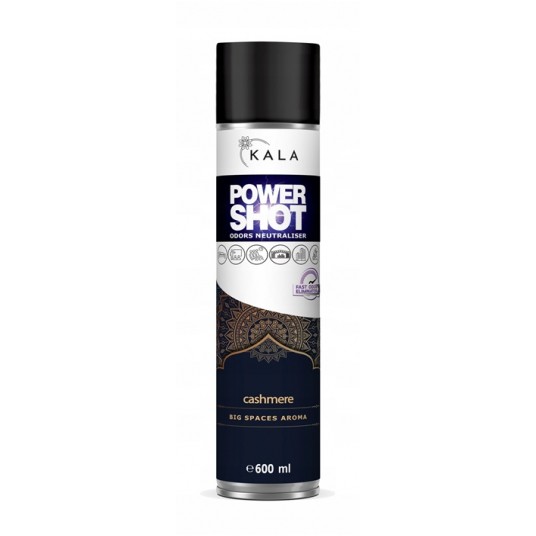 Neutralizator nieprzyjemnych zapachów, aromatyzer, odświeżacz Kala POWER SHOT zapach cashmere 600 ml to prestiżowy zapach tajemniczości orientu, w którego składzie odnajdziemy orientalną wanilię, a także nuty żywiczne, drzewne, ambrowe. Cashmere otuli Cię swym aromatem niczym delikatny szal.