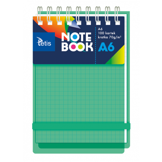 Kołonotatnik w oprawie PP. Posiada plastikowe transparentne przekładki (5 sztuk) i gumkę dopasowaną do koloru okładki. Gramatura papieru: 70 g/m2Ilość kartek: 100Typ: kratka