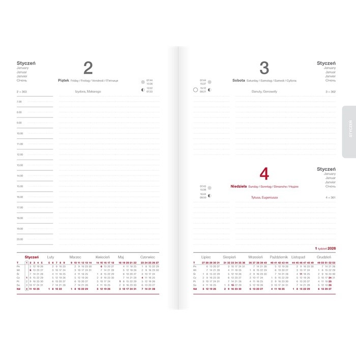 Kalendarz Szefa Herlitz 2026 to eleganckie i funkcjonalne narzędzie do codziennej organizacji czasu, stworzone z myślą o osobach, które cenią porządek, przejrzystość i profesjonalny wygląd. Dzienny układ stron zapewnia pełną stronę na każdy dzień roboczy, co pozwala swobodnie planować zadania, spotkania i notatki bez ograniczeń. Twarda oprawa pokryta wysokiej jakości okleiną vivella nadaje kalendarzowi ponadczasowy charakter i zapewnia trwałość przez cały rok intensywnego użytkowania. Dzięki brulionowemu, szytemu i klejonemu grzbietowi, kalendarz otwiera się płasko i pozostaje stabilny na biurku, co przekłada się na wygodę pisania. Markowane registry ułatwiają szybkie odnalezienie konkretnego miesiąca, a zaznaczenie świąt i ważnych dni pozwala lepiej planować czas zawodowy i prywatny. To doskonały wybór dla każdego, kto potrzebuje solidnego i stylowego narzędzia do zarządzania codziennością.