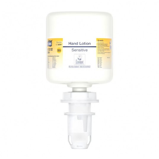 Tork nawilżający balsam do rąk do skóry wrażliwej jest idealny dla skóry suchej. Pozostawia ją odżywioną i miękką. Bezzapachowy balsam ze składnikami nawilżającymi pomaga utrzymać naturalną równowagę nawilżenia skóry / pomaga skórze zachować wilgoć. Pasuje do Tork mini dozowników do mydła i preparatów do dezynfekcji, które posiadają certyfikat łatwego użytkowania Easy-to-use i zapewniają wszystkim użytkownikom wysoki poziom higieny rąk.
