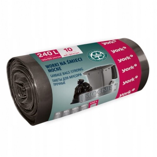 Bardzo mocne i wytrzymałe worki na śmieci o pojemności 240L.