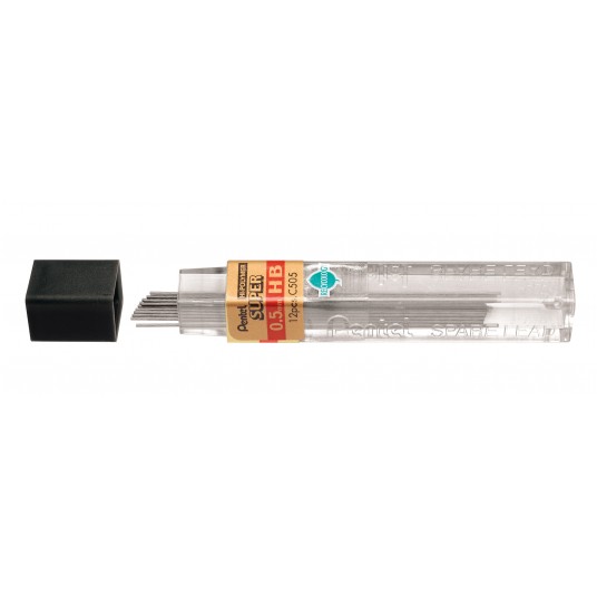 Grafity Super Hi-Polymer 0,5 mm zastąpiły popularne grafity 100 Hi-Polimer. C505 to doskonałe połączenie syntetycznej żywicy, grafitu i węgla, tworząc w ten sposób wyjątkowo trwałe i jednocześnie elastyczne wkłady ołówkowe. Nie zawierają szkodliwych substancji. Długość linii pisania - ok. 15 m (HB) , Dostępne twardości: 2B, B, HB, F, H, 2H, 3H, 4H (2B ~ 82 g, B ~ 103 g, HB ~ 123 g, H ~ 148 g).